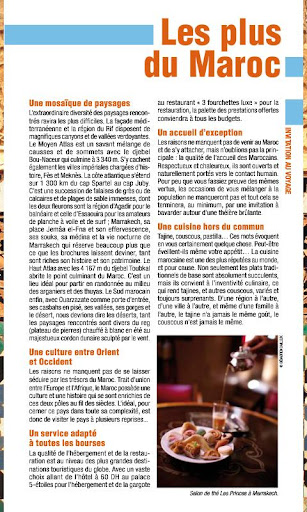 Certaines destinations se distinguent des autres par de magnifiques qualités humaines, c'est le cas du Maroc. Chaleureuse et tolérante, la population locale est naturellement encline au contact humain, et si le touriste fait preuve des mêmes vertus, nul doute que tout ce petit monde se trouvera réuni autour d'une tasse de thé. Quant au pays lui-même, il saura séduire les plus réticents. Il existe une diversité de paysages incroyables : vallées verdoyantes et magnifiques canyons composent la région du Rif et la façade méditerranéenne, tandis que la côte atlantique est marquée par une succession de falaises de grès et de plages immenses. Trait d'union entre l'Europe et l'Afrique, le Maroc invite à la découverte d'un patrimoine culturel aux multiples facettes.