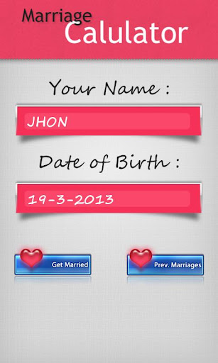 this marriage calculator app is based on real algorithm upon your age which you mention in this app.This is the brand new marriage calculator to test your love!
