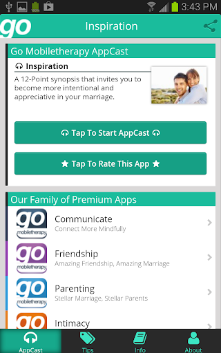Download the Marriage Therapy – Inspiration App now! Accessing the beneficial information will take only minutes of your time; yet, doing so has the power to increase the joy and satisfaction in your marriage for months and years to come.