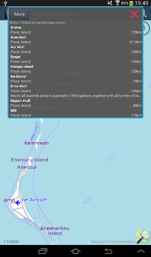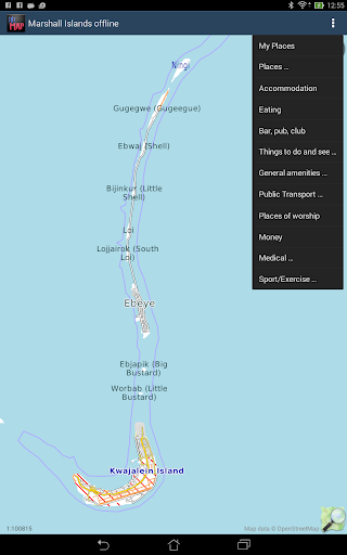 Offline map of the Pacific nation of the Marshall Islands for tourist & business visitors. Download before you go and avoid expensive roaming charges ... if indeed there is service. The map runs completely on your device; display with pan and zoom, routing, search, bookmark, everything. It does not use your data connection at all. Switch your phone function off if you want to!