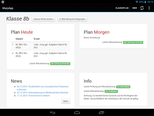 Der aktuelle Vertretungsplan mit weiteren Informationen in einer einfachen und übersichtlichen App im modernen Design.