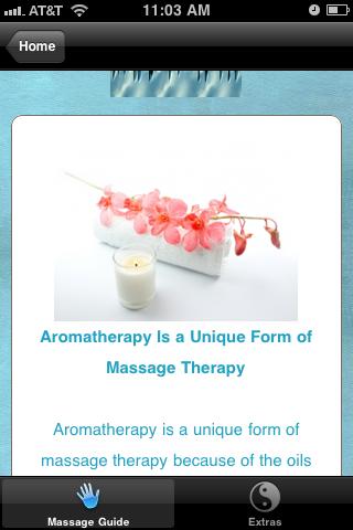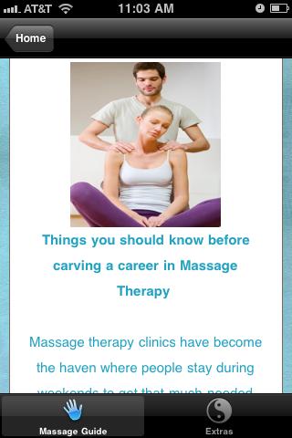 Get information on various types of Massage Therapy, the benefits of massage, and tips on soothing massages for both personal and career use. This simple app covers topics such as Reflexology, Shiatsu, Aromatherapy, and more. If you need quick information about how to give that soothing touch or you're a physical/personal trainer looking for additional information on quicker healing for your clients it's all inside. Learn the history of massage and the health benefits of the various types of massages covered.