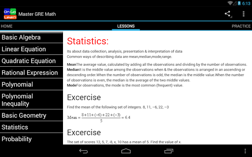 Master GRE Math helps you excel in the math section of GRE(Graduate Record Examination) test. This app has Tutorial, Practice Exercise, Practice Test & GRE math challenge.