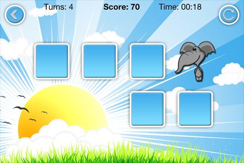 A memory match game with cute animals. With four different levels of difficulty it's both fun and it's helps your kid to improve his/her memory and concentration ability. Select between 8, 12, 20 or 30 cards.