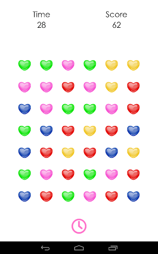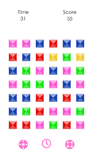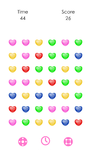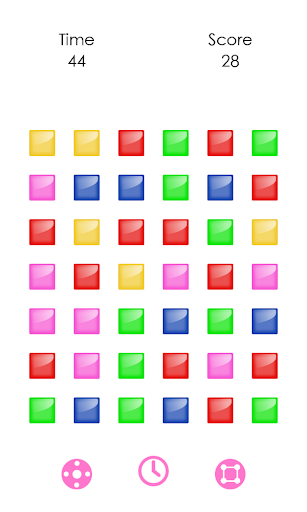 Match & Connect Dots is a simple puzzle game - connect as many same-colored dots as you can in 60 seconds. To connect dots you need to drag your finger over the dots of same color either vertically or horizontally. Connected dots will be removed and you will get one point for each removed dot. If you manage to create a loop then all dots of the same color will be removed. Challenge mode allows you to earn extra time which later can be used extend the duration of the game and score more points. Choose your favourite theme among, hearts, shiny boxes and simple boxes.
