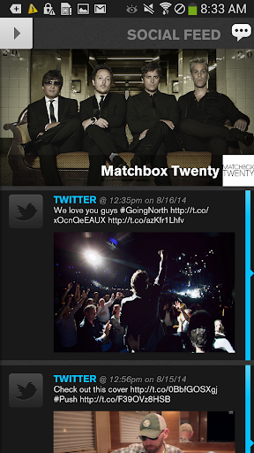•Social feed including Twitter, Instagram and Facebook Posts made directly by Matchbox Twenty