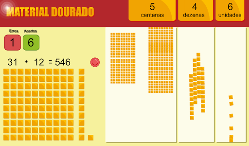 Utilizando o cubinho(UNIDADE), a barra(DEZENA) e a placa(CENTENA) a criança deve formar o resultado da conta mostrada.