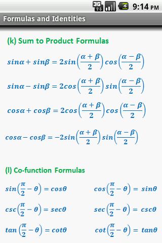 Math Formulae Lite is one unique and comprehensive app that is particularly designed as a one-stop solution for College Grade/Higher Grade Students. It lists out all the important formulas/topics in Algebra, Geometry, Trigonometry and Calculus. Regular review of these formulas/concepts will definitely help improve your grades.