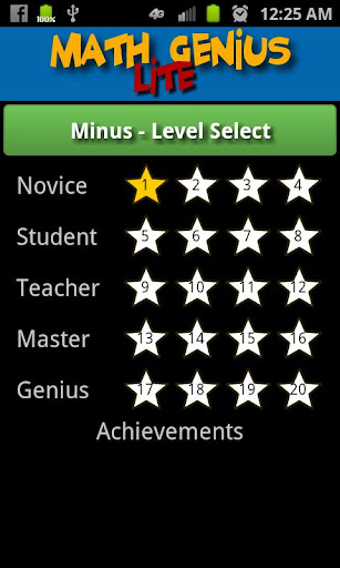 The free Lite version includes any five levels per category for a total of 20 possible levels. The lite version is a great way to to try out the app before buying the full version. See if Math Genius Lite can improve you and your family's math skills today!