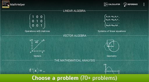 Math Helper Free is an universal assistant app for step-by-step solving mathematical problems for Algebra 1-2, Calculus (integral, Derivative, antiderivatives, vector, matrices (matrix), limits, equation, shapes, number etc) for school, secondary, college and university students and everyone who learn.