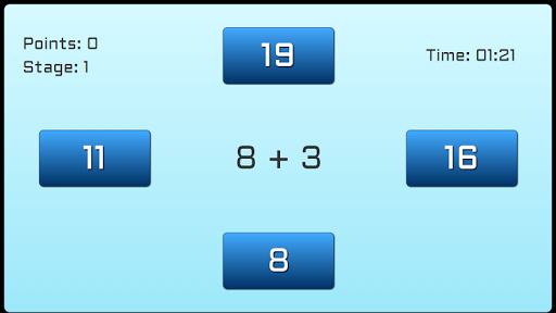 You get a math question and 4 possible answers, you have only 5 second to chose right answer. If you give the correct answer, you go to next stage. For every completed stage you will get 100 points, for any unused time you can get another 50 points.