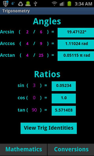 - Have access to all the trigonometric identities currently used in high school and college/university