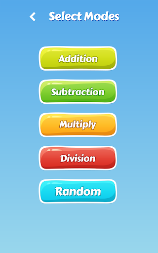 Game Modes - Addition, Subtraction, Multiplication, Division, Random.