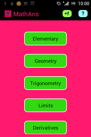 User can find many standard thinks in MathAns application. There are most general mathematical formulas such as Table of Integrals, Derivatives, Rows, Trigonometry, Probabilities and others. Using these, you can find solution for various standard mathematical problems.