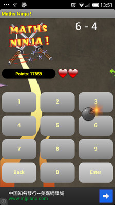 有几个游戏模式,只是正常的数学,你练习和一个街机模式中,你会争取生存而被数学忍者袭击做数学运算!你shurikens投掷炸弹,等
