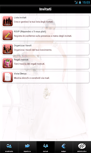 Potrai gestire la lista degli invitati, organizzare i tavoli e tenere traccia dei regali ricevuti.