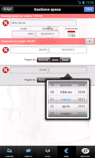Potrai controllare il budget e le spese sostenute per l'organizzazione del tuo matrimonio.