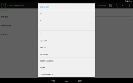 Try the free version before buying: https://play.google.com/store/apps/details?id=de.vertedge.matrix.calculator