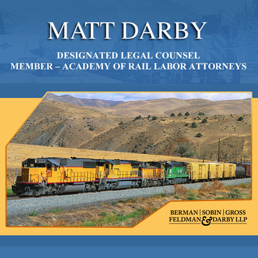 Matt Darby is a principle partner of Berman, Sobin, Gross, Feldman & Darby LLP. He has handled cases involving Railroad Worker Legal issues for over 20 years in numerous jurisdictions. Matt is Designated Legal Counsel for the United Transportation Union, the Brotherhood of Railroad Signalmen and the Sheet Metal Workers International Association. He is a member of the Academy of Rail Labor Attorneys. Matt has successfully litigated Federal Employers Liability (FELA) cases for Railroad Workers resulting from traumatic and cumulative trauma injuries. He has also handled "Whistleblower" cases arising under the Federal Rail Safety Act (FRSA"). Lastly, he has worked with Railroad Workers on issues involving their rights before the Railroad Retirement Board.