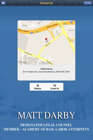 Mr. Darby's mobile app contains important legal information critical to Railroad Workers, an updated blog feed, a direct contact feature and much more. Now Railroad Workers can keep Matt right in their pocket and share with others that may need his services. Download Matt Darby's mobile app and feel protected knowing he is just a click away.