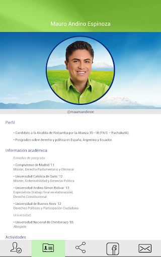 Aplicación informativa sobre la campaña de Mauro Andino para la alcaldía de Riobamba