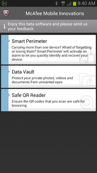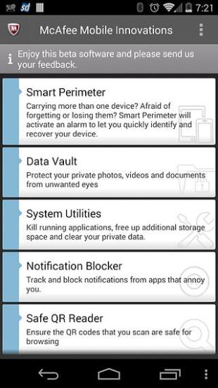 《McAfee安全创新 McAfee Security Innovations》意在帮助用户减少其设备的丢失。 【软件特点】: -智能模式:当两部设备分开超过30英尺,便会发出警报; - 数据安全:保护本地设备上照片、视频和文件的安全 -二维码安全扫描:确保您扫描的二维码安全性。...