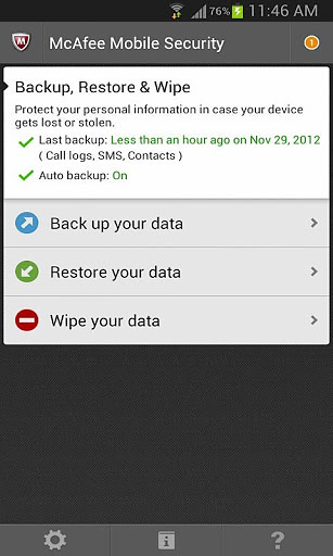 McAfee Mobile Security 免费提供定位、警报和备份/还原功能。此外,此下载还包括高级版功能的 14 天的免费试用。试用结束后,您可以保留该应用程序的免费版本。