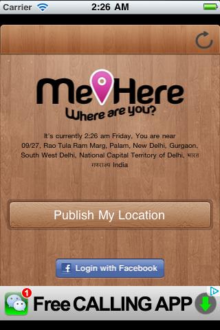 MeHere is a geographic location based messaging app that shares your current location with your Facebook friends. Find friends who are near to your location using a gps enabled phone. Are you on tour? Would like to send you recent activity with your location details? Then MeHere is an app that will make your moment shared with your dear ones.
