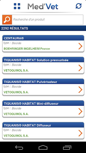 - recherche par nom de médicament, principe actif, espèce cible, voie d'administration, laboratoire