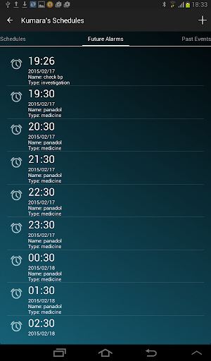 You can schedule alarms or notifications to remind the activities such as taking a pill, medical investigation or appointment with a doctor.