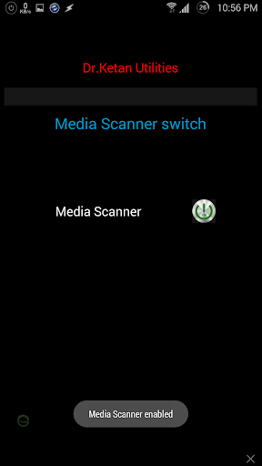 - It will media scanner scanner switch text and right to that there is icon. single press on icon will enable media scanner. To disable media scanner long press same icon. same information pop up if you tap on media scanner switch text.