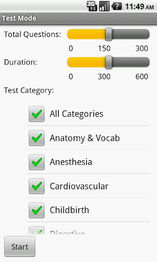 * Test Mode -- Designed to simulate the exam experience. Set your own question and time constraints.