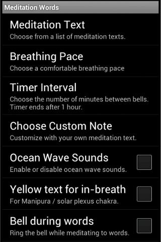 The app works by showing words or phrases on the top of the screen for your in-breath, and on the bottom for out-breath. You can choose from meditations and prayers from various traditions: Christian, Buddhist, Taoist, & secular.