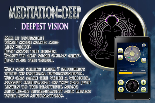 To awaken your inner vision is to awaken to your deepest life purpose and to discover capabilities and inner resource you may even imagined you possessed. What is the Deepest Vision? • Seeing things as they are • Seeing yourself as you are • Seeing everything through the eyes of your inner child • Seeing order in the chaos • Seeing peace in the turmoil . This incredible power to see things beyond the physical eyes is something we all possess. The purpose of DEEP::Meditation is to awaken to that and thus gain access to it. This allow all of those untapped resources that live inside of you to come out and be seen. As with all the Clear Mind Sound meditations and affirmations, this app contains Spirit::Technology, the very best, meditation enhancing audio entrainment. There in the background of the original music, barely audible is a powerful aid to meditation, relaxation and super learning. Spirit::Technology is our proprietary brain entrainment technology that gently guides you to deeper levels of stillness and peace. And, in this meditation, and the ones that will follow it, the depths is where we want to go.