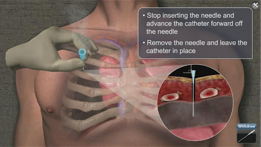 The Advanced/Paramedic task of Needle Chest Decompression is fully illustrated using 3D graphics and the critical skills are tested using interactive exercises. This Needle Chest Decompression lesson includes: verifying the presence of tension pneumothorax, identifying where and how to insert the needle, and performing the chest decompression procedure.