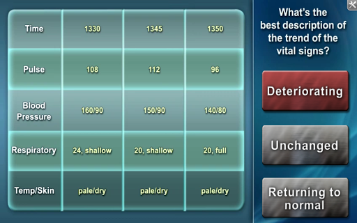 Reassessment is a vital step in the patient evaluation process. This is taught using fully illustrated 3D graphics and interactive exercises to reinforce key learning concepts. This lesson will help the EMS provider reevaluate a patient and determine the improvement or deterioration of the patient’s status.