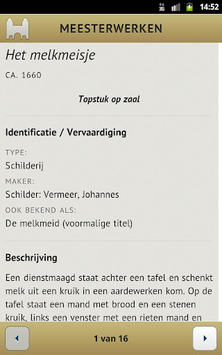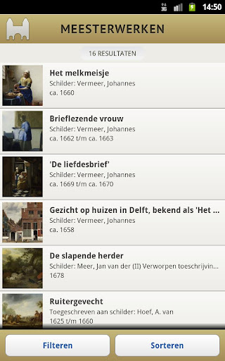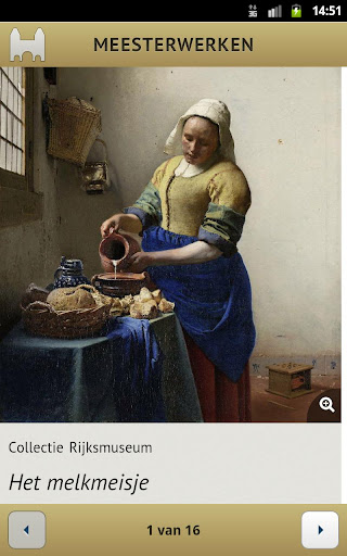 "Meesterwerken" is een app, ontwikkeld door Armatiek BV, waarmee je kan zoeken in de kunstwerken van het Rijksmuseum in Amsterdam. Je kan vrij zoeken op eigenschappen. De resultaten worden getoond als lijst, waarin je verder kunt "uitfilteren" op type, ouderdom, origine, materiaal en toegepaste techniek. De lijst kan worden gesorteerd op relevantie, periode en de omvang van het object. Van elk kunstwerk wordt een afbeelding getoond, en een complete beschrijving gegeven.