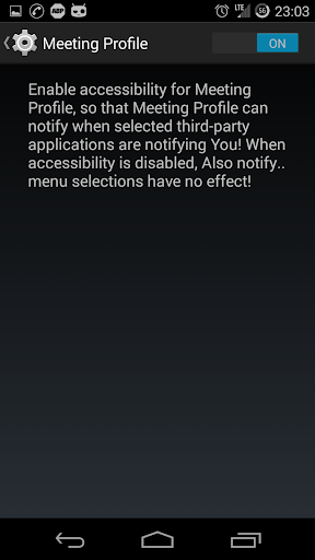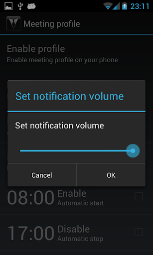 Keep forgetting to turn silence mode on? No problem, You can now schedule when profile is activated and when deactivated. You also can choose the days of week when Meeting Profile uses this feature (e.g workdays)