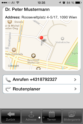 Mit dieser App bleiben Sie mit Ihrem Arzt in Verbindung. Herunterladen, Arzt-Code eingeben und schon können Sie in wenigen Schritten einfach und bequem auch von unterwegs einen Termin bei Ihrem mednanny Arzt vereinbaren. Neben Informationen zur Ordination, medizinischen Leistunden, Öffnungszeiten, Routenplaner zur Ordination und einer Bildergalerie, erinnert Sie die Online Termin-App zeitgerecht an vereinbarte Termine und trägt sie in Ihren Kalender ein. So vergessen Sie bestimmt nie wieder einen Arzttermin. Ihr Arzt kann Ihnen sogar direkt Nachrichten senden. Die App ist auf englische Sprache umschaltbar.