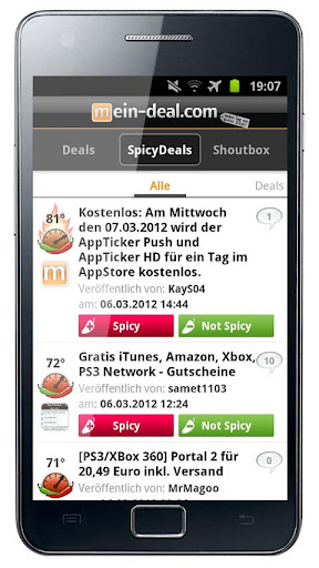 + Intuitive Oberfläche zum direktem Voten und hinzufügen von Spicy Deals