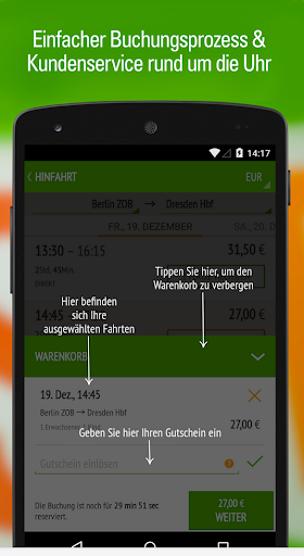 Sie können Ihre Buchungen jederzeit in der App einsehen und auch die auf der Webseite durchgeführten Buchungen in der App laden. Nutzen Sie unsere Fernbus App für den schnellen und bequemen Check-In und tun Sie gleichzeitig noch etwas für die Umwelt, indem Sie sich den Ausdruck des Tickets sparen.