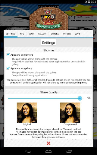 This application contains more than 900 memes divided into 26 categories. You can import and share via all messaging applications that allow sharing of images