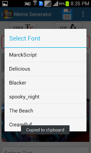 With Meme Generator you can create the funniest memes and share them with your friends via Facebook, Twitter, Instagram, WhatsApp, Google+, E-mail, Dropbox, Picasa...