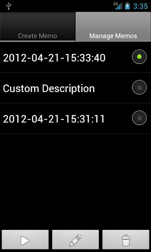Memo Maker Plus allows you to record voice memos, play them back, and edit their descriptions for easy finding. If you have no more need of a previously recorded memo, you can simply delete it.