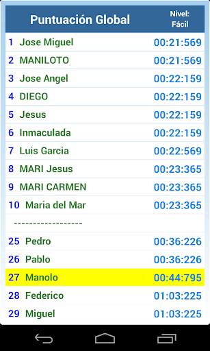 Listado Global de usuarios, para saber quien es el más rápido!!