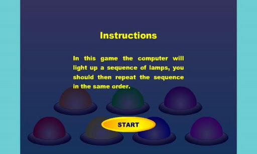这个记忆游戏测试你的短期记忆。在这个游戏中,电脑将首先由一个闪烁的灯一个,那么你将不得不在同一顺序相同的灯闪烁。如果你犯了一个错误的举动,游戏就结束了。闪烁的次数会逐渐增加,所以步骤要记住的数量将会增加,游戏会越来越难。这个游戏是免费。