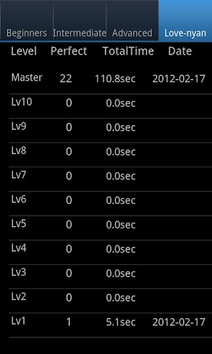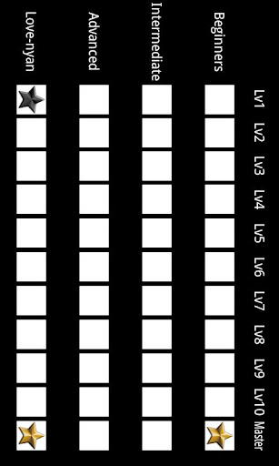 「Beginners」,「Intermediate」and「Advanced」are for memory numbers, 「Love nyan」is for memory patterns of colors.
