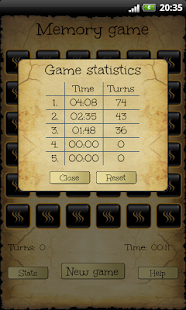 在記憶遊戲開始時所有的卡都奠定面朝下。兩張卡(對)翻轉面朝上超過每回合。如果對那兩個卡都是相同的,那麼它們處於打開狀態,否則會被再次轉向面朝下。