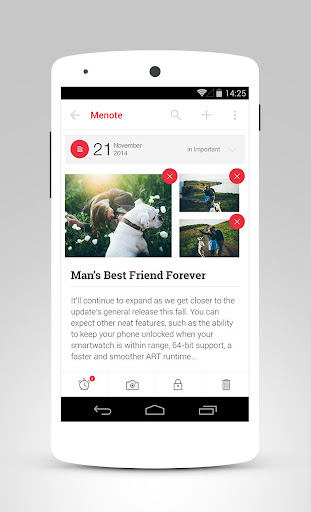 - the ability to add images and photos on the note; intuitive control with attaching images