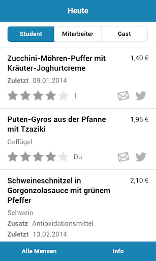 Die folgenden Speisepläne werden von der App bereitgestellt: